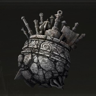 | "A amuse that resembles a nifty jar overflowing with weaponry. Vastly boosts maximum equipment load. The great jar grants this talisman to their warriors. |